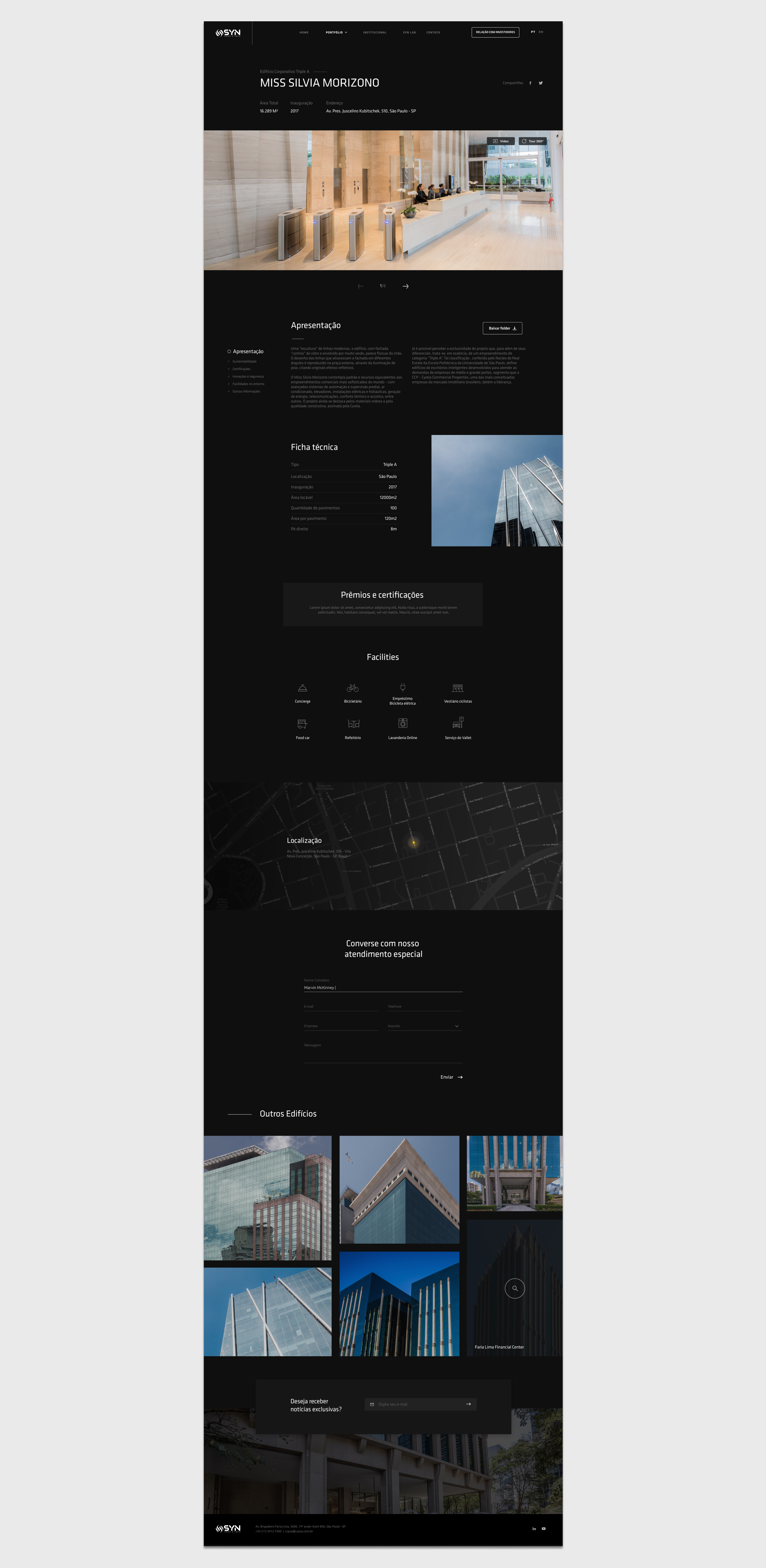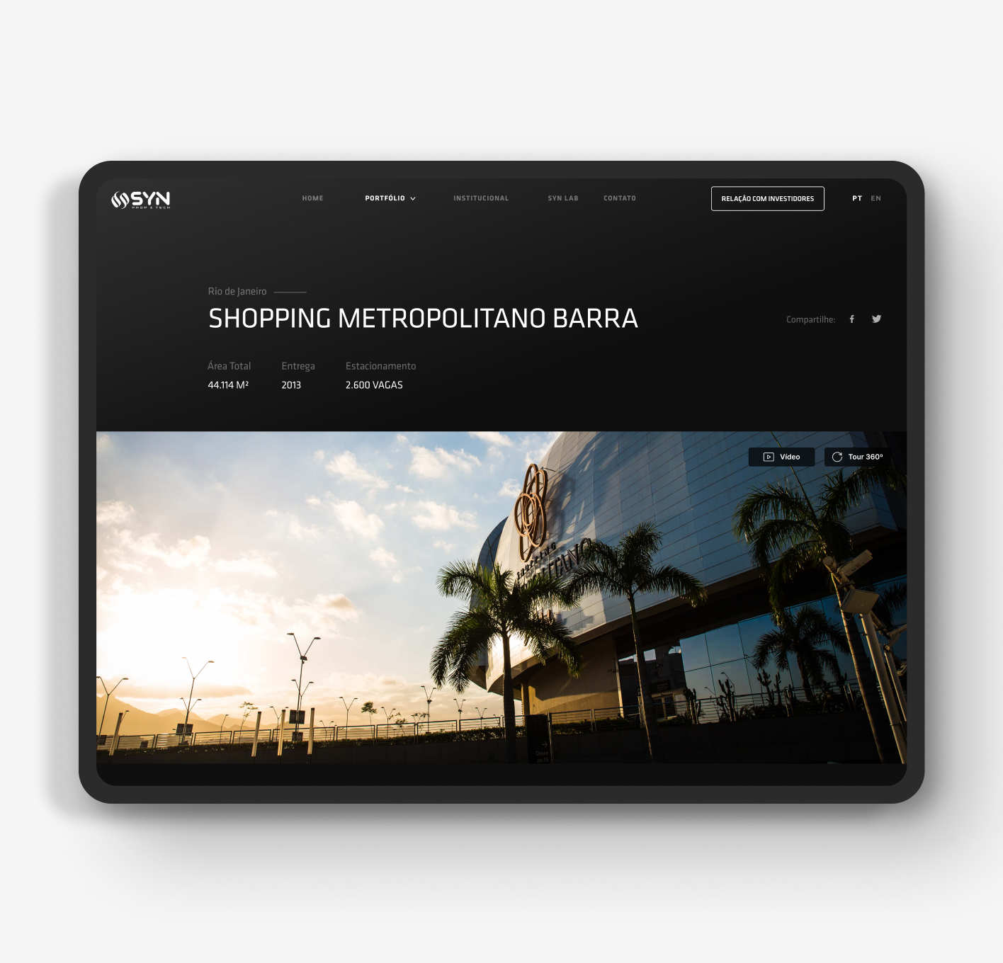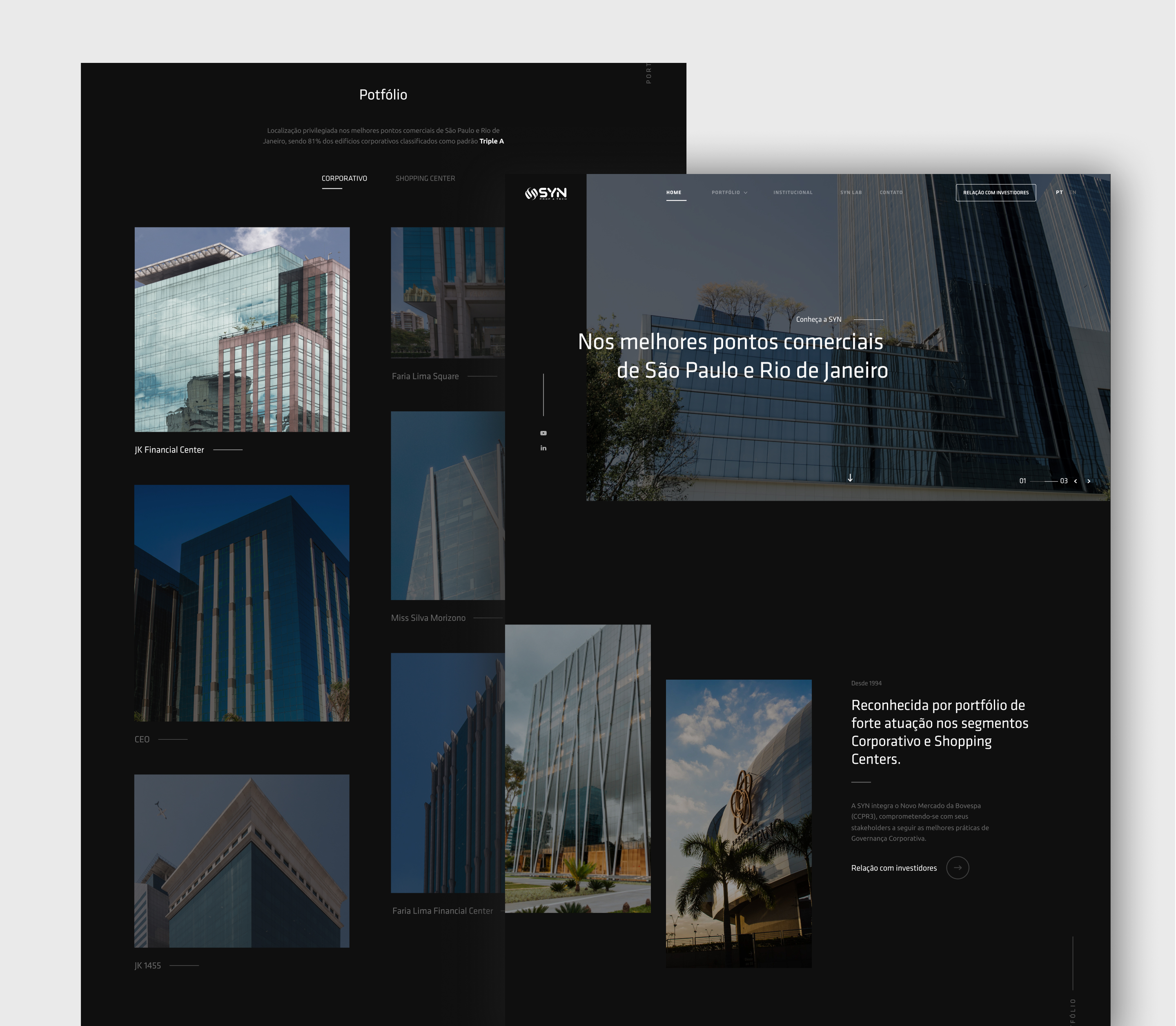 A CCP (Cyrela Comercial Properties) se reposicionou no mercado como uma Proptech e mudou sua marca para SYN. Essa mudança precisava de um website a altura. Nosso trabalho foi comunicar o viés tecnológico e adequado ao público AAA através do design, promovendo a imagem da marca e atraindo novos negócios.