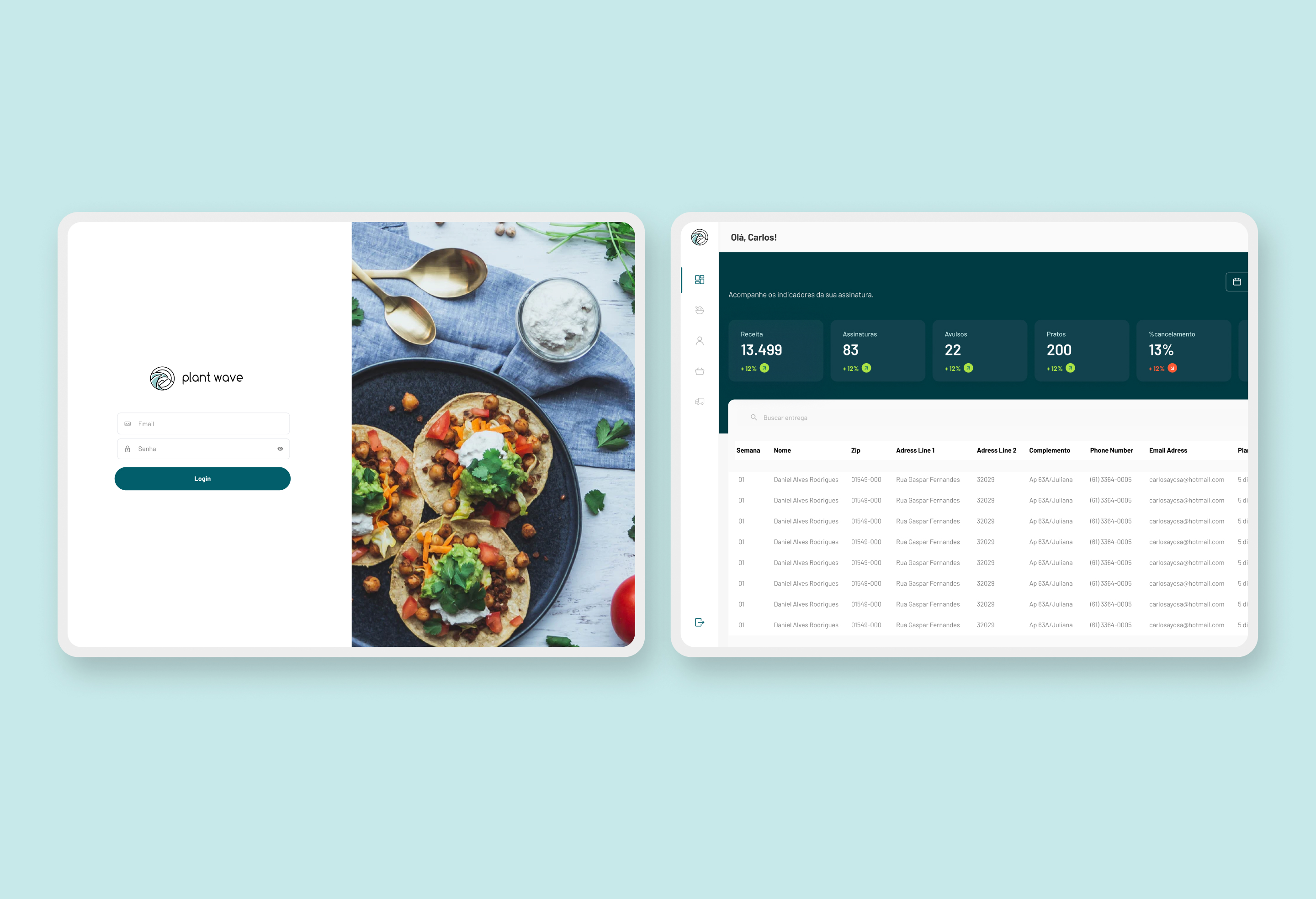 Plant Wave é uma startup que produz e entrega comida plantbased fresquinha na sua casa, através de uma assinatura. Nossa equipe realizou o ciclo completo: desde o MVP até o design das interfaces. Projetamos o e-commerce, aplicativo mobile do usuário e o sistema da operação,que exibe indicadores e gerencia os pedidos dos clientes.